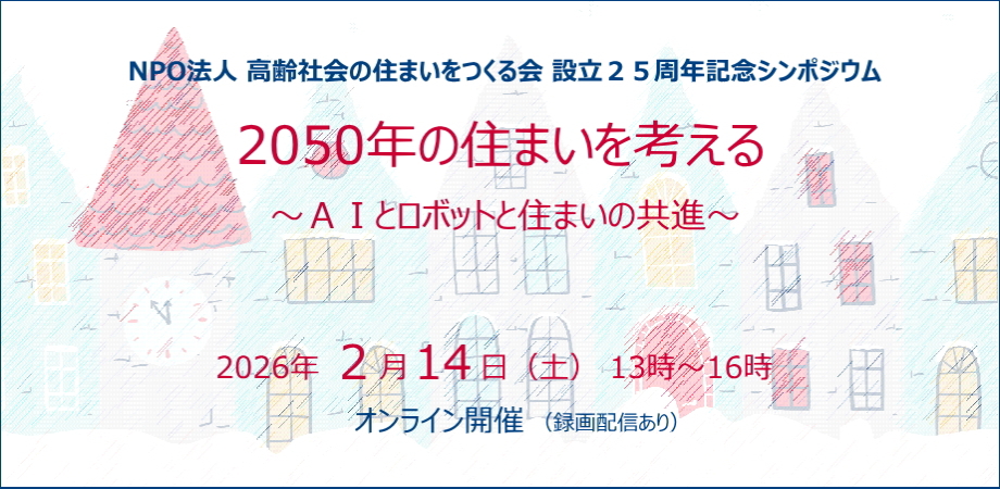 今回のシンポジウムでは、AIと介護ロボット分野の研究において、最先端でご活躍なさっている東北大学の平田泰久先生をお迎えし、これから先の25年は現実的にどのような変貌を遂げていくのか、2050年の住まいのあり方を共に想像し、考えます。