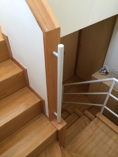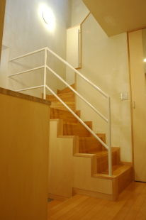 階段は明るくする事に努めました。 階高が高いので、階段は珍しく2回曲げてあります。