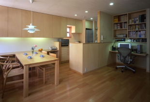 キッチンと壁一枚隔てて書斎コーナーを設けてあります。