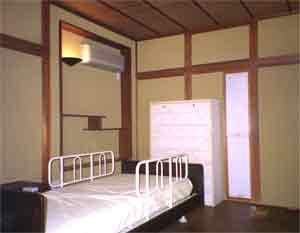 立ち上がり、座ることが難しくなり、家の中で過ごす時間も増えた。そこで、生活を畳み床に座るスタイルからベッド、椅子式に変えた。寝室、食事室の床、壁等を改修し、ジャッギベッドを導入した。