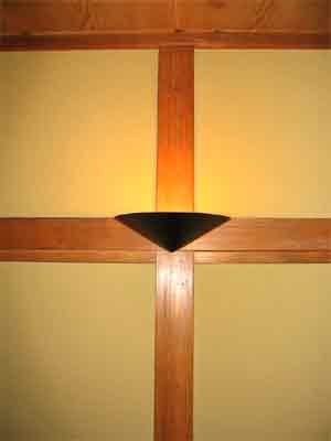 ベッドで新聞などを読むことが多くなると予想されるので上からの照明を避け長押に間接照明を設けた。