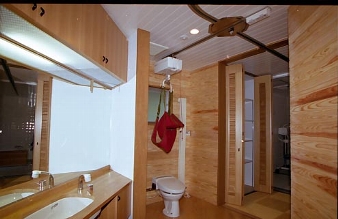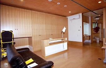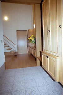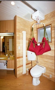 不慮の交通事故に見舞われたために、これまでの住まいに新たな機能を付加し、地域に住み続ける工夫をした家である。母屋はパーティ空間として残し、新築建物とデッキで繋いだ。次に車椅子の生活が中心になるため、ご本人、奥様、病院でリハビリテーションを担当した医師、PT、OT、そして福祉用具製作メーカーに参加を呼びかけ、ベッドサイド、水廻り空間の配置や寸法決定を行った。この家は加齢による身体機能の低下を視野に入れるなど大きな発想をされた家族の力とその意向をよく理解して住宅づくりに参加した関係チームの連携によって造られた。その動きは、最新高齢者・障害者の家づくりで必要とされている「ハウスアダプテーション」そのものであった。 |